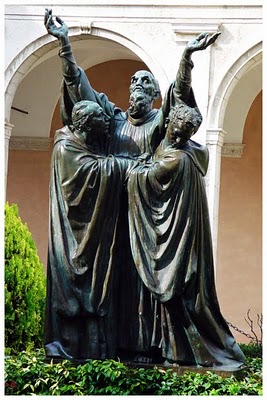 Tendo pedido e recebido a bênção do Santo Abade, Mauro correu para o lago, andou sobre as á guas, sem se dar conta , e puxou Plácido pelos cabelos para a margem, sem pensar em si mesmo.