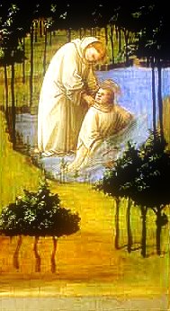 Tendo pedido e recebido a bênção do Santo Abade, Mauro correu para o lago, andou sobre as á guas, sem se dar conta , e puxou Plácido pelos cabelos para a margem, sem pensar em si mesmo.